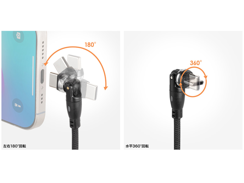 サンワサプライ、コネクタ部が曲がったり回転したりするUSBケーブル