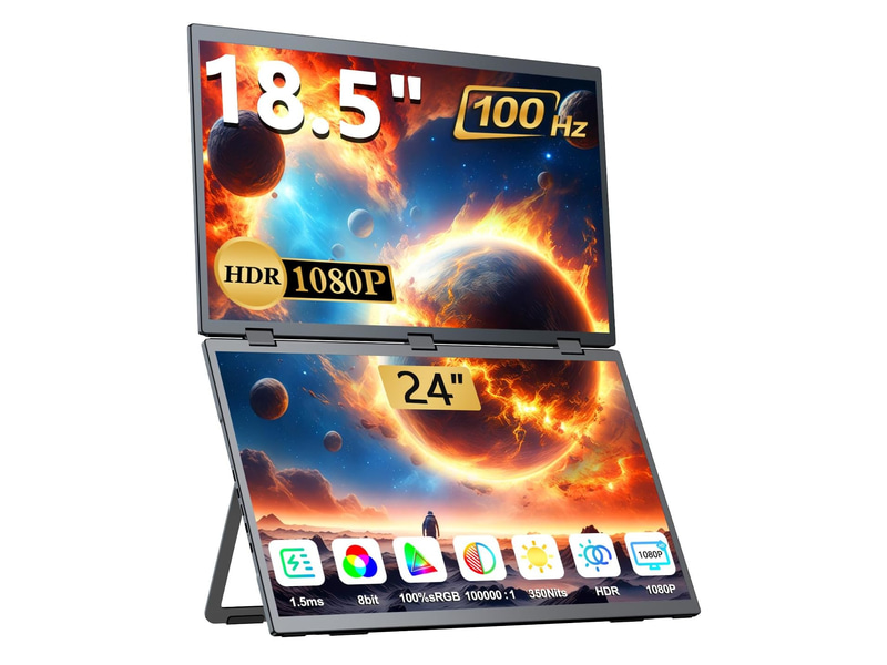 100Hz/18.5型の2画面モバイルモニターが2万4千円引き