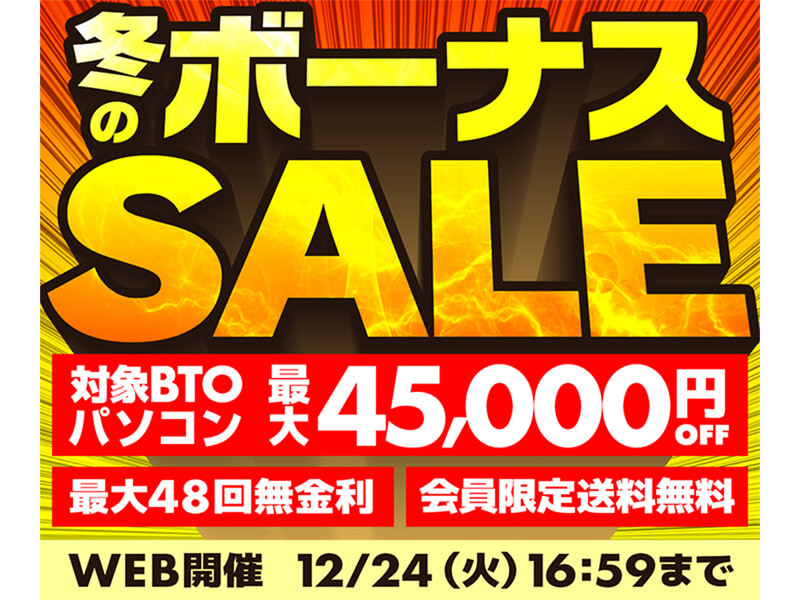 パソコン工房、対象PCが最大4万5,000円オフの「冬のボーナスセール」