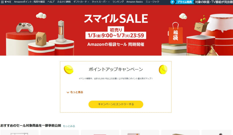 Amazonの「スマイルSALE初売り」は1月3日から5日間。福袋も用意