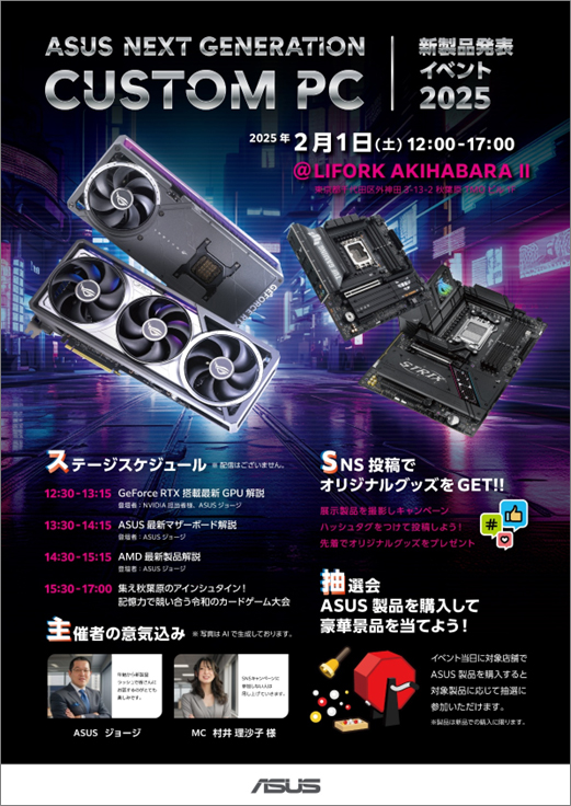 ASUSの新マザボやビデオカードの体験イベント、秋葉原で2月1日開催