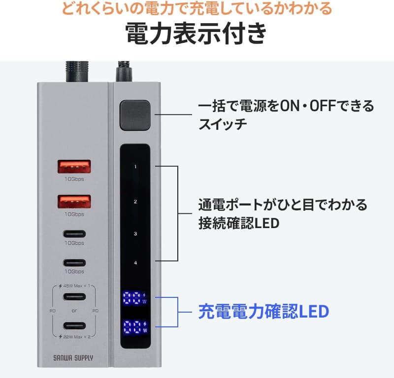 45W充電器を一体化したUSB 3.2 Gen 2対応ハブ