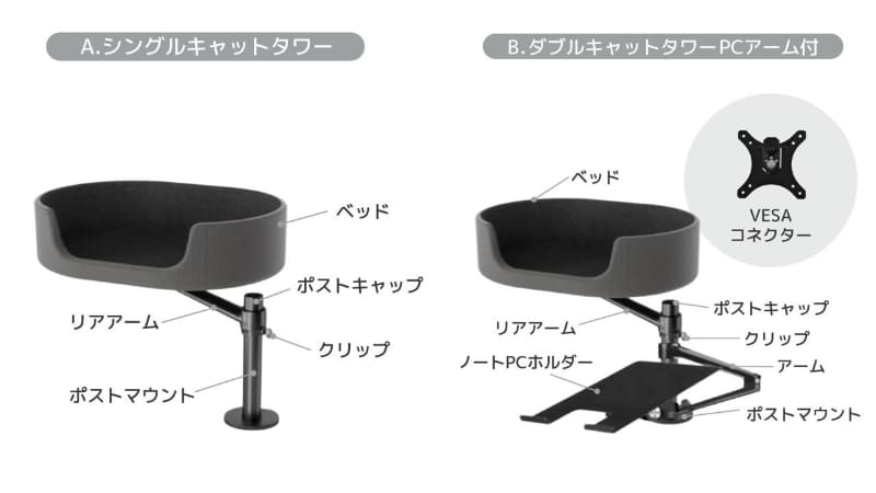クランプでデスク上に設置できるキャットタワー