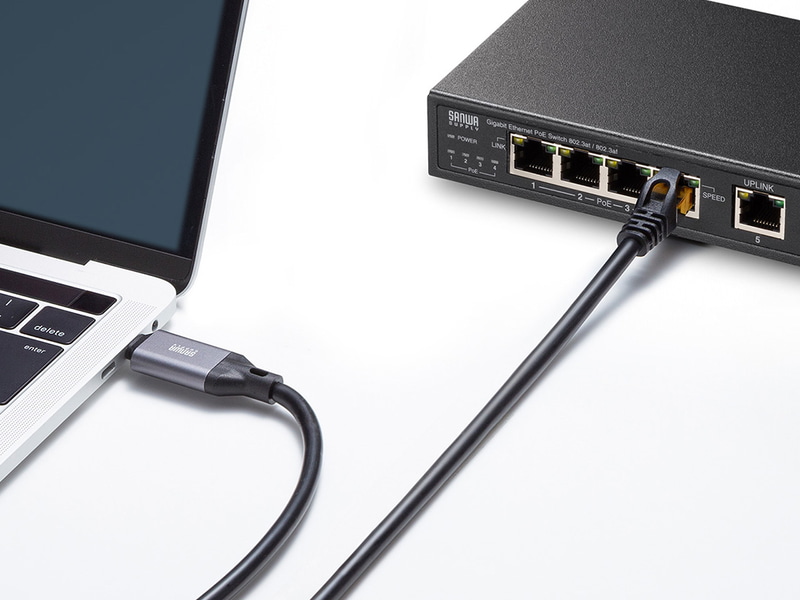 USB Type-Cから直接LANに接続できる変換ケーブル