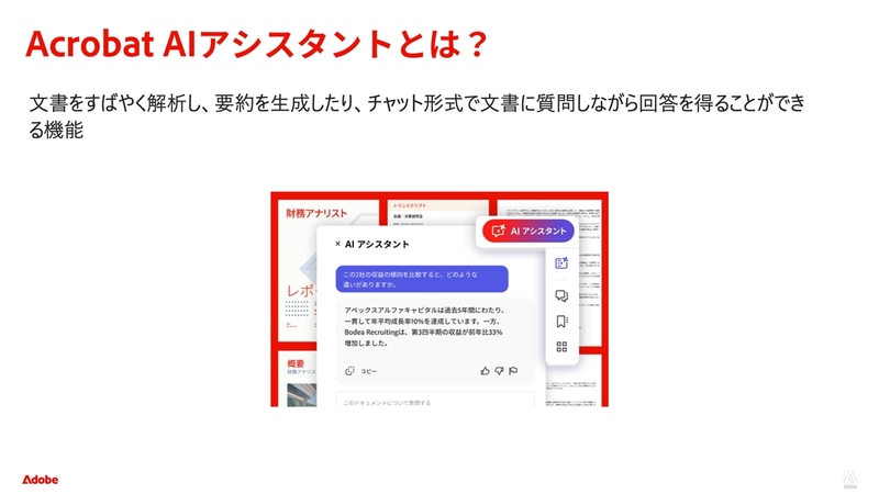 Adobe Acrobatに対話型AI「AI Assistant」、文書や要約作成が可能に