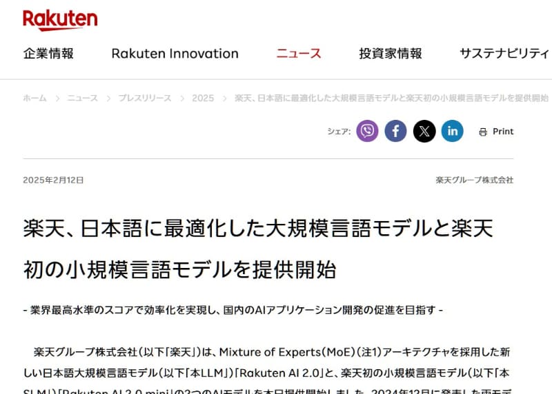 楽天、日本語に最適化したLLMと初のSLM