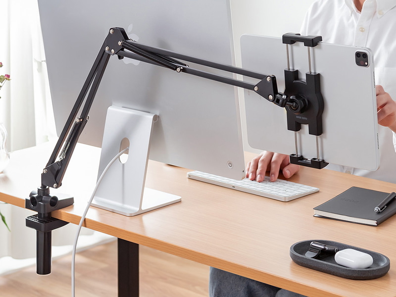 寝ながらタブレットを使えるクランプ式アームホルダー