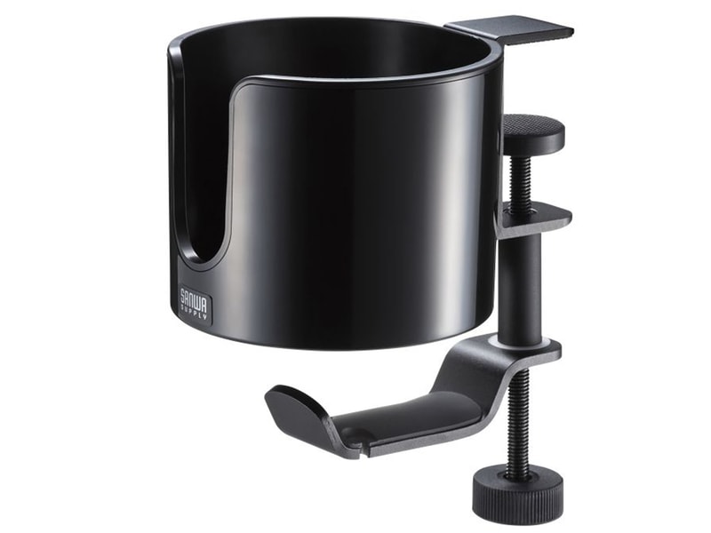 ヘッドフォンなどをデスク脇に収納できるダブルフックハンガー、サンワサプライ