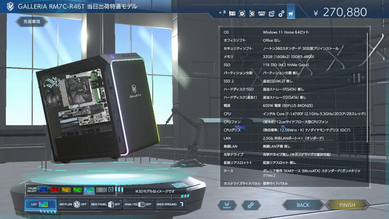 ドスパラ、「GALLERIA」製品ページに3Dモデルでカスタマイズできる機能を実装