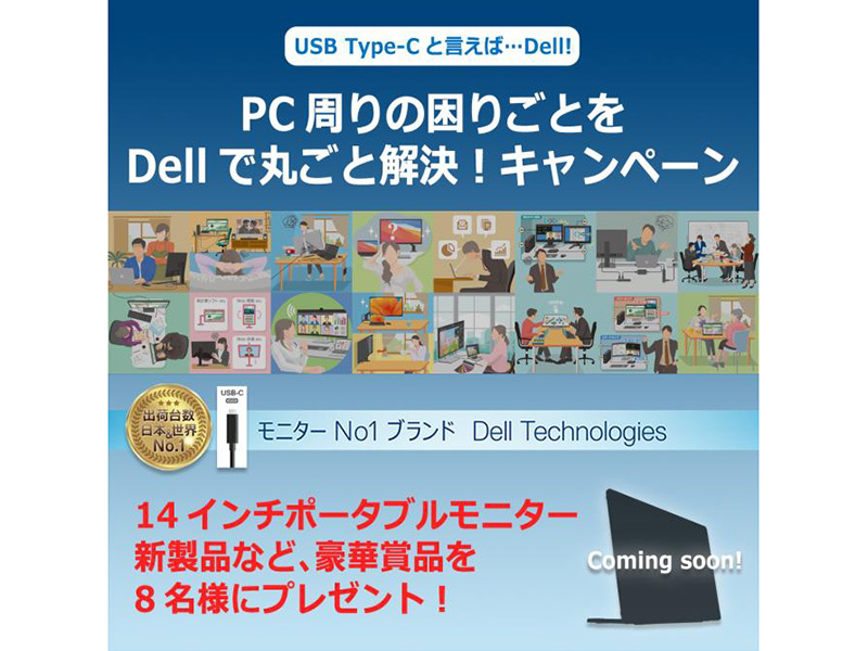 デル、14型モバイルモニターなどが当たるSNSキャンペーン