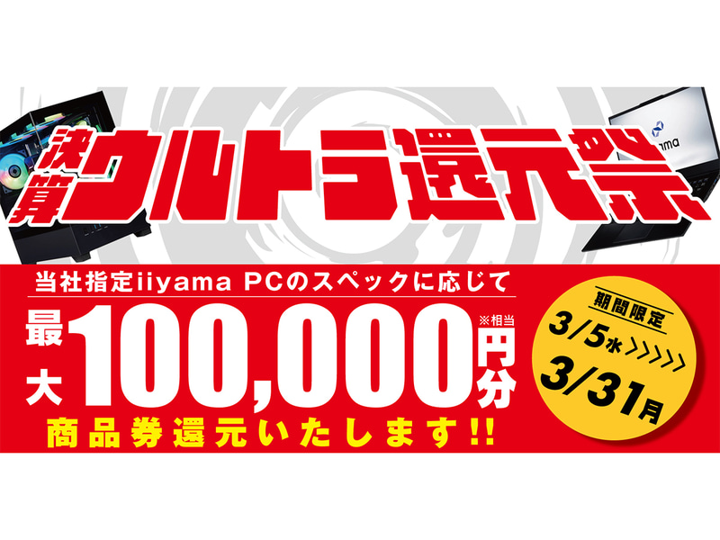 パソコン工房、対象PC購入で最大10万円分相当を還元する「決算ウルトラ還元祭」