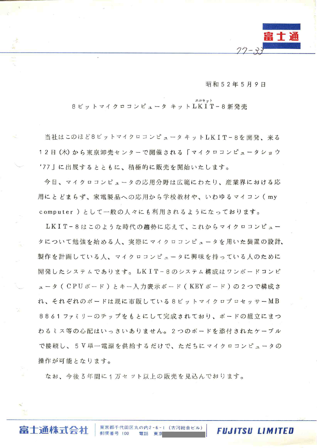 ニュースリリースで振り返る、時代を築いたPCたち【富士通編 LKIT-8~FM-8】