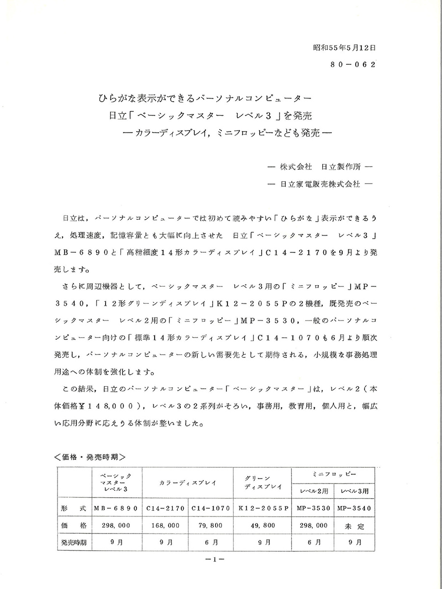 ニュースリリースで振り返る、時代を築いたPCたち【日立編 H68/TR~ベーシックマスター レベル3】
