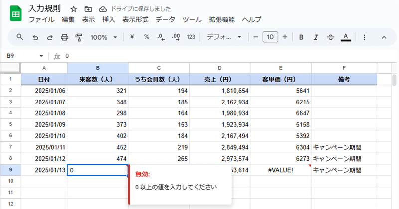 Googleスプレッドシートの「入力規則」活用法。共有時に入力を制限したいときに便利
