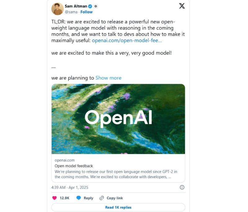 OpenAI、「強力なオープンウェイトモデル」を数カ月以内に投入