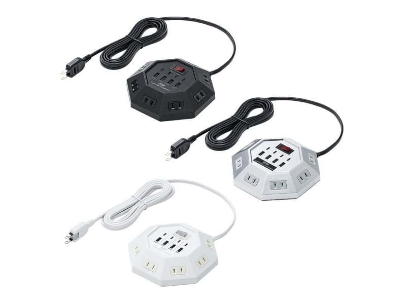 サンワサプライ、回転式コンセント搭載型やケーブル一体型など電源タップ2種