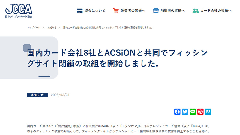 フィッシングサイト閉鎖に向け、クレジットカード会社らが共同で取り組み