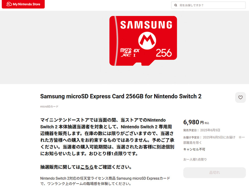 Nintendo Switch 2、抽選販売の応募受付開始