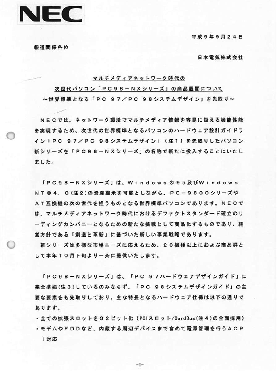 ニュースリリースで振り返る、時代を築いたPCたち【NEC編 PC-9801N~PC98-NX】