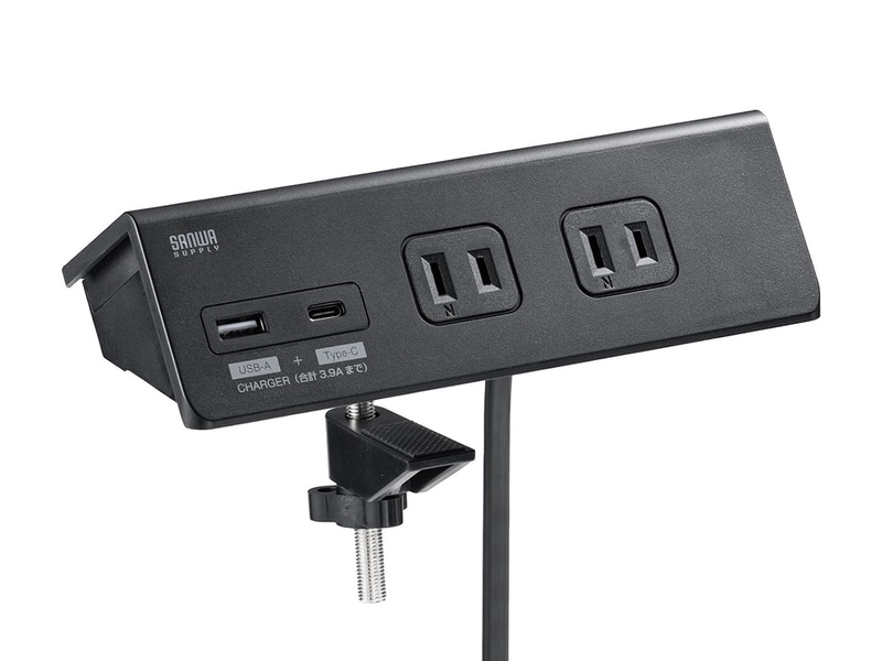 サンワサプライ、スマホ/タブレットを3台置けるスライドスタンド付き電源タップ