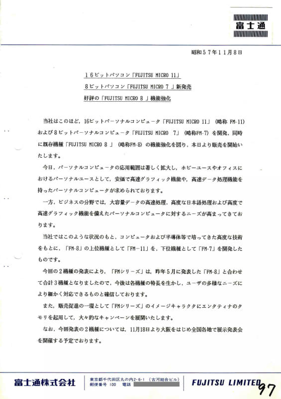ニュースリリースで振り返る、時代を築いたPCたち【富士通編その2/FM-11~FM TOWNS~FMV】