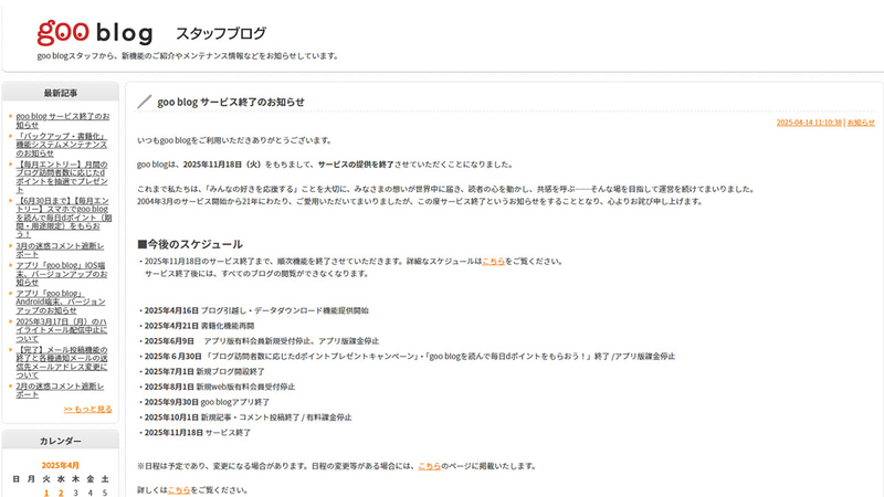 「goo blog」や「教えて! goo」が2025年内にサービス終了