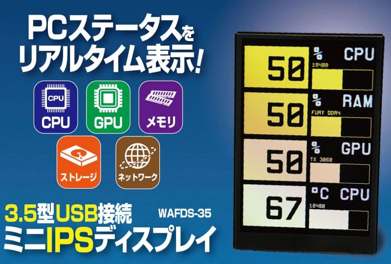 PC状況を監視できる、USB接続の3.5型モニター。約4,500円