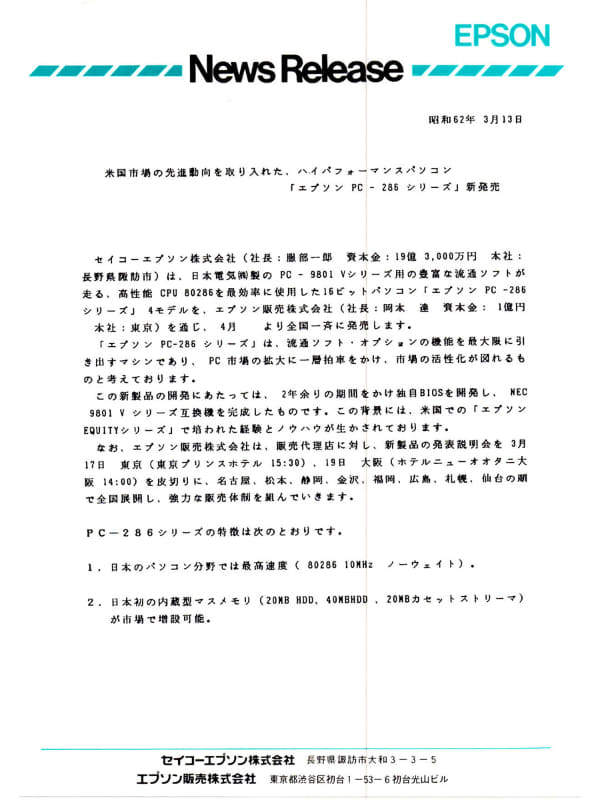 ニュースリリースで振り返る、時代を築いたPCたち【エプソン編 HC-20~PC-286~Endeavor AT】