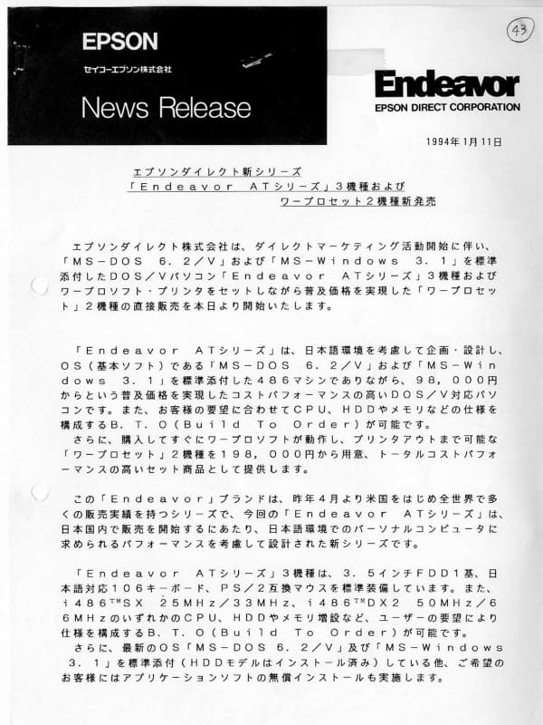 ニュースリリースで振り返る、時代を築いたPCたち【エプソン編 HC-20~PC-286~Endeavor AT】