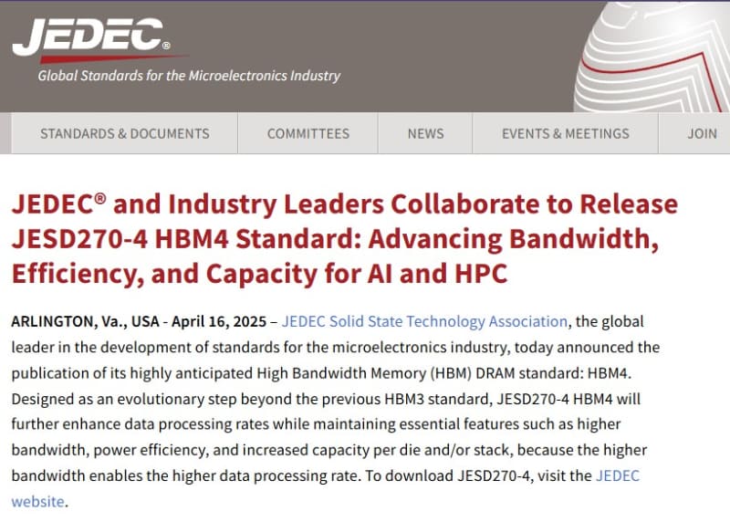 1チップで2TB/sの帯域を実現する「HBM4」規格が策定