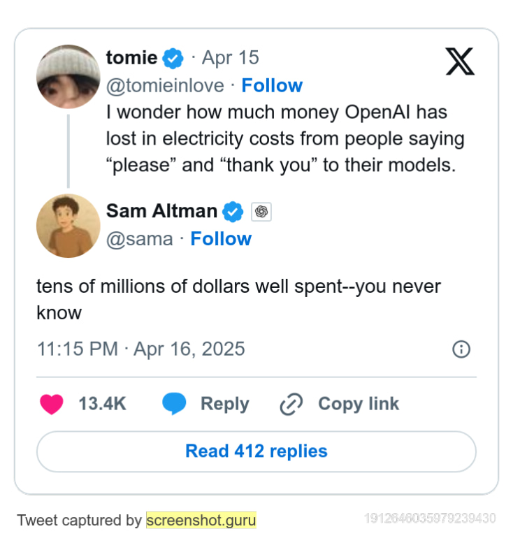 ChatGPTへの”ありがとう”は数億円のコスト増で論議。アルトマンCEOは「価値ある出費」と評価