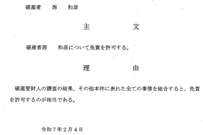 西和彦氏、115億円の破産手続き完了を報告