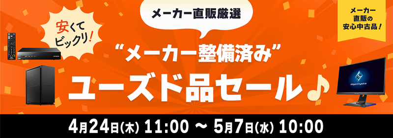 23.8型モニターが67%オフなど、アイ・オーが整備済みユーズド品をセール中