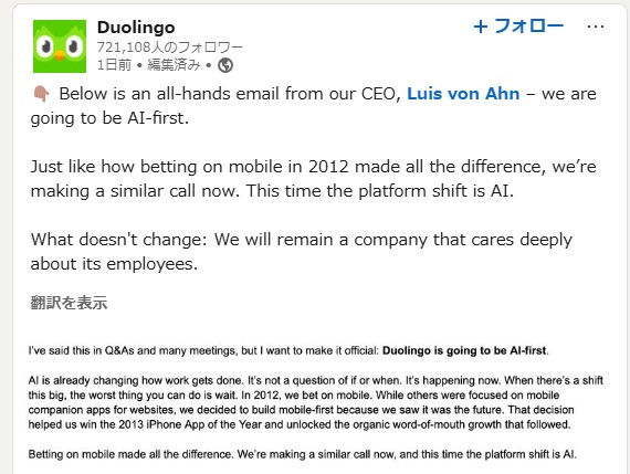 👇🏽 Below is an all-hands email from our CEO, Luis von Ahn – we are going… | Duolingo | 645 comments