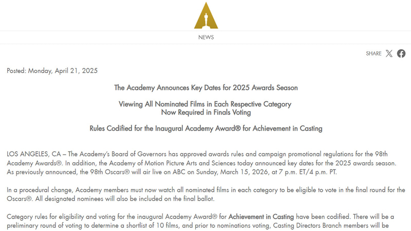 「映画制作に生成AIを使ってもアカデミー賞の選定に影響しない」アカデミー理事会が言及