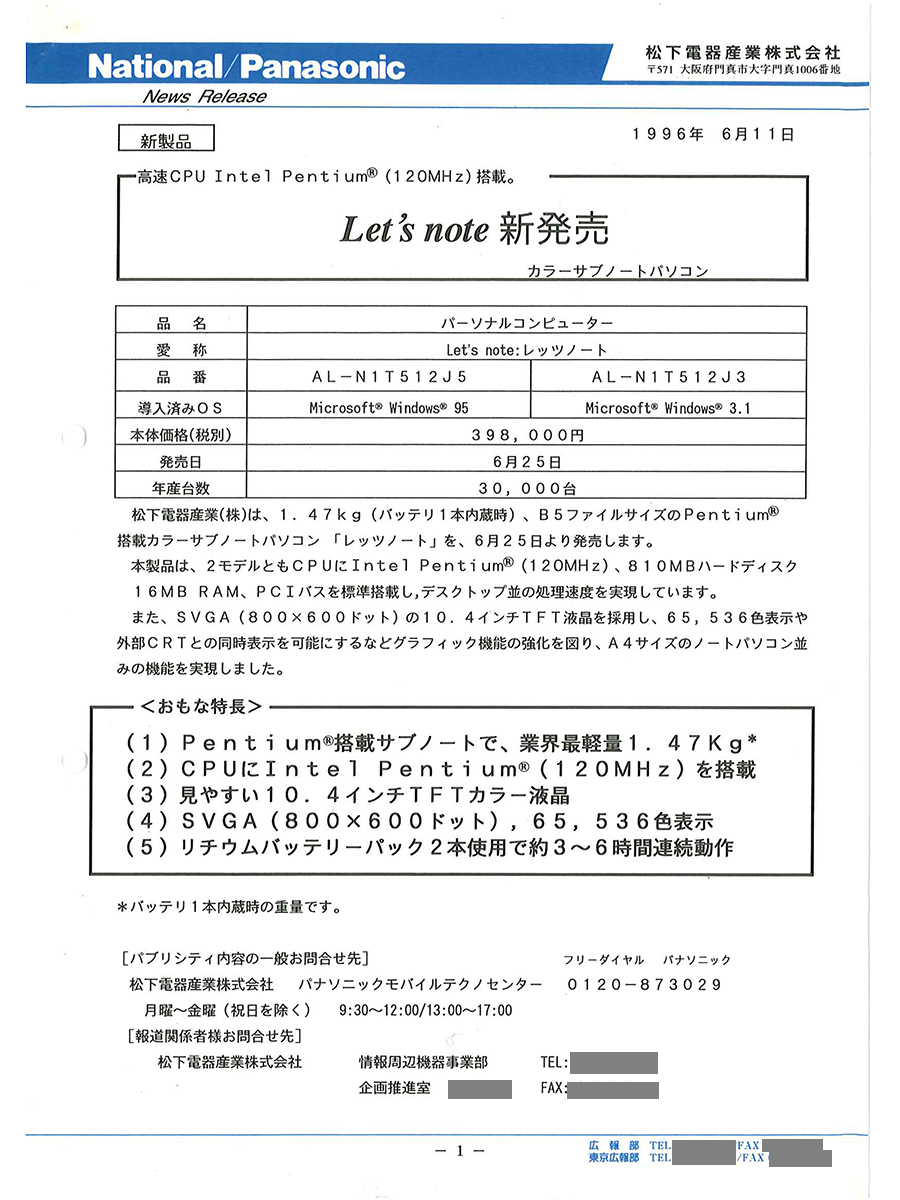 ニュースリリースで振り返る、時代を築いたPCたち【パナソニック編JR-100~CF-2000~レッツノート】