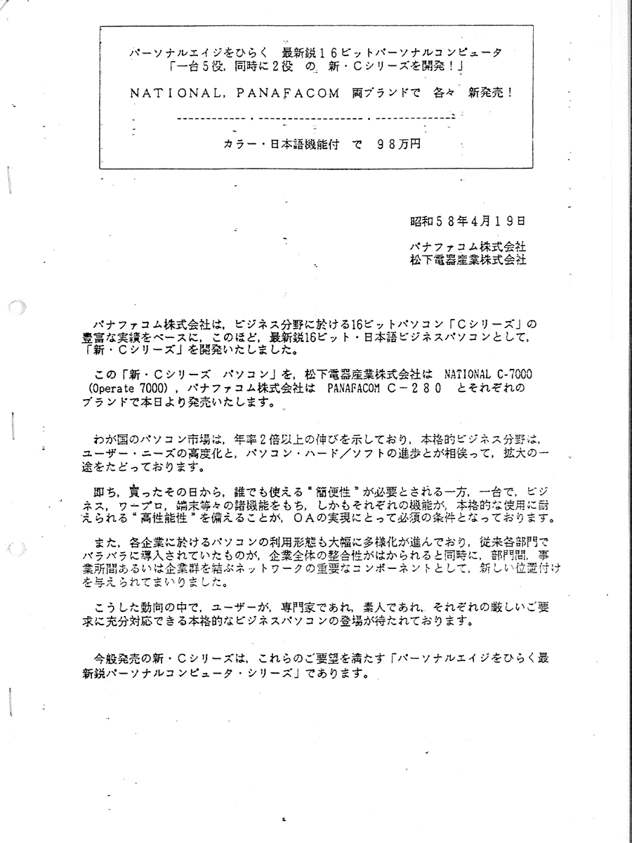 ニュースリリースで振り返る、時代を築いたPCたち【パナソニック編JR-100~CF-2000~レッツノート】