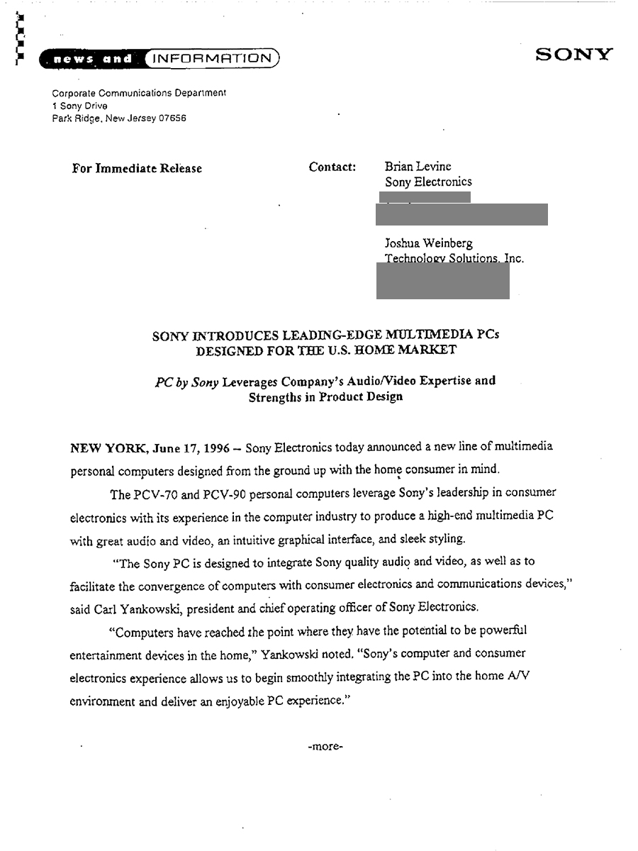 ニュースリリースで振り返る、時代を築いたPCたち【ソニー編 SMC-70~VAIO PCG-505】