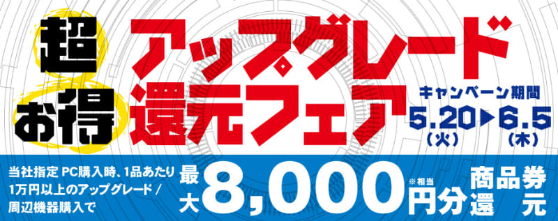 パソコン工房、PCの購入で最大8千円相当を還元するキャンペーン。6月5日まで
