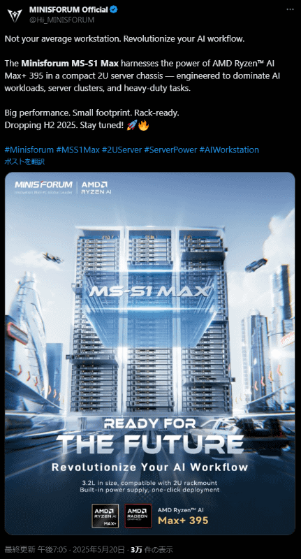 Ryzen AI Max搭載ミニPC「MINISFORUM MS-S1 MAX」全貌公開。今回も機能てんこ盛り!