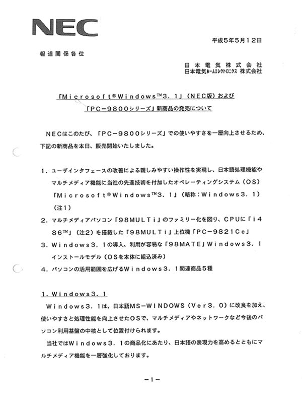 ニュースリリースで振り返る、時代を築いたPCたち【Microsoft編 Windows 3.0~95】