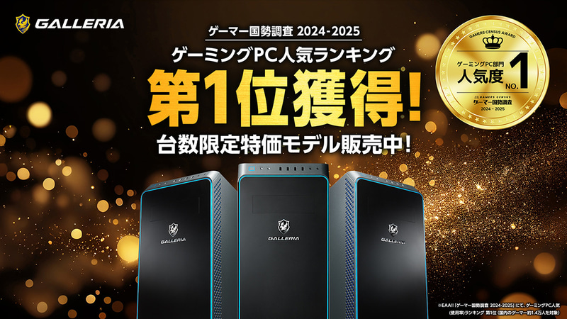 GALLERIA、「ゲーマー人気度No.1記念モデル」を数量/期間限定で発売
