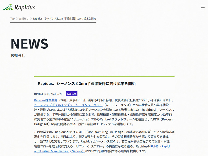 Rapidus、2nm世代半導体製造のパイロットラインを4月に立ち上げ