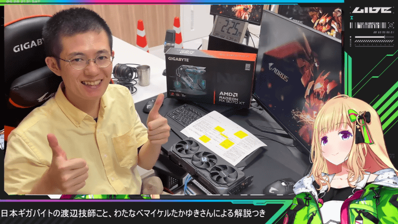 アキロゼさん、GIGABYTEのRadeon RX 9070 XTビデオカードを配信で紹介