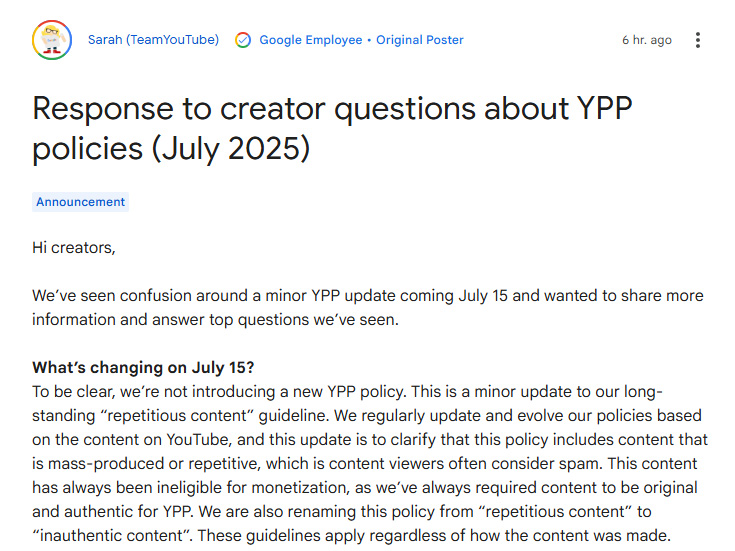 「AIの利用自体は問題なし」。YouTube、収益化を制限する”量産動画”について補足