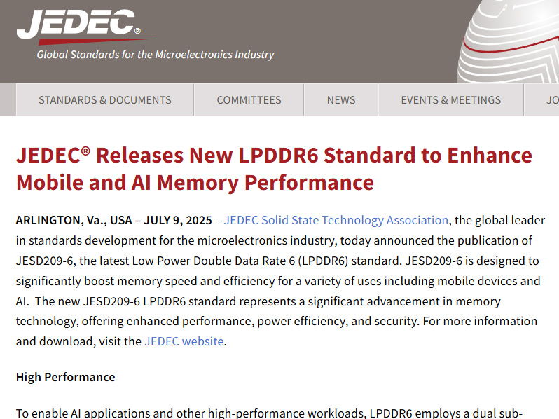 速度や電力効率を向上した次世代低電力メモリ「LPDDR6」