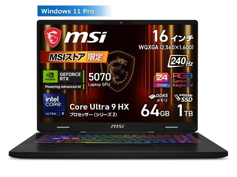 GeForce RTX 5070/Core Ultra 9搭載ゲーミングノートが3万円引き