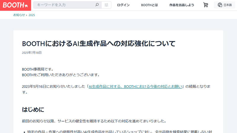 BOOTH、生成AIを使った模倣行為への監視を強化。即時アカウント停止などを実施