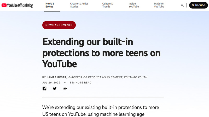 YouTube、AIでユーザーの年齢を推定する機能。子どもの保護に活用
