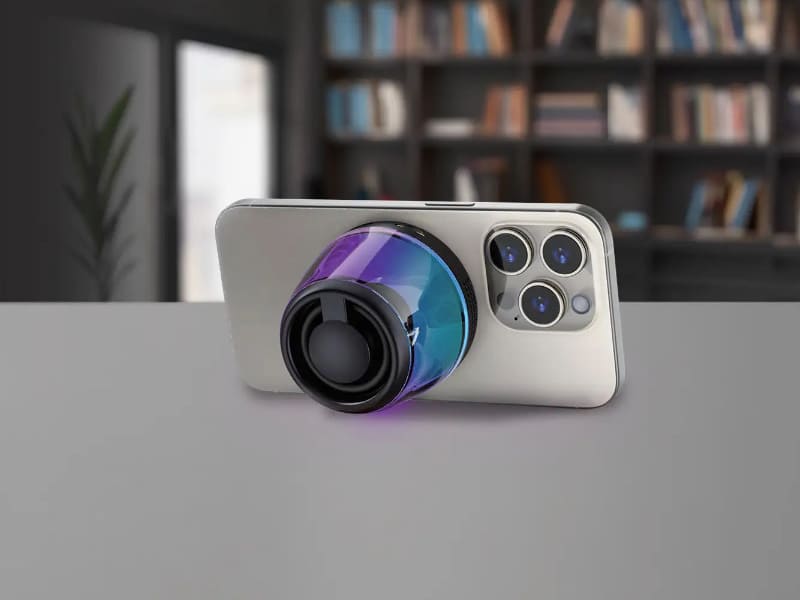 ゲオ、スマホの背面に設置できる小型Bluetoothスピーカー